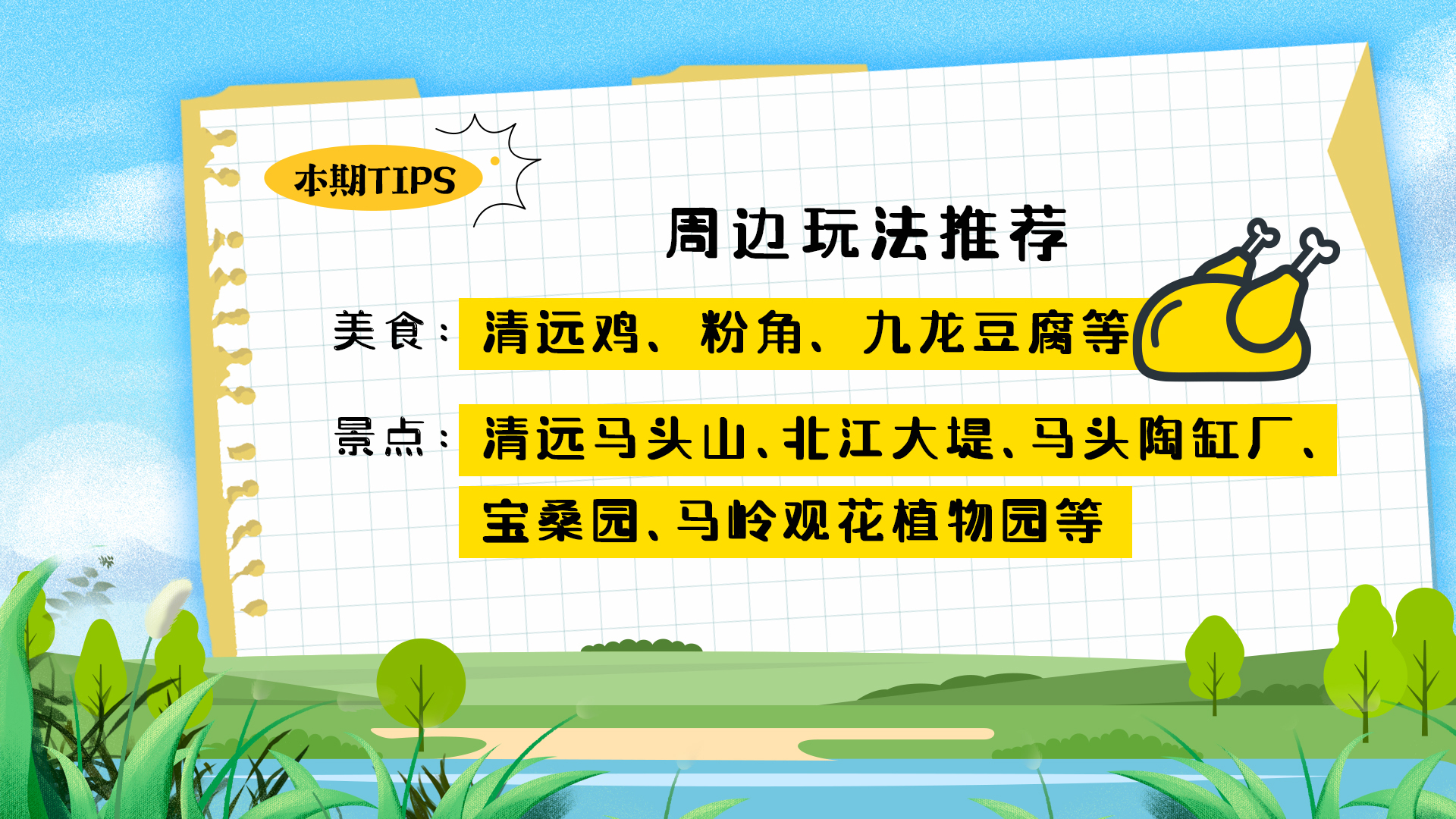 景点:清远马头山、北江大堤、马头陶缸厂、宝桑园、马岭不雅花植物园等